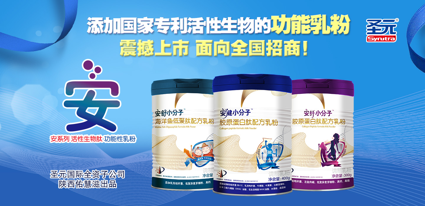 由圣元國際全資子公司陜西佑慧滋營養(yǎng)食品公司出品,由江西貝倍優(yōu)獨家運營的“安健小分子”膠原蛋白肽配方乳粉、“安纖小分子”膠原蛋白肽配方乳粉、“安舒小分子”海洋魚低聚肽乳粉目前已經(jīng)首發(fā)上市。產(chǎn)品定位于功能性乳粉營養(yǎng)品,功能物質(zhì)添加來源于具備國家發(fā)明專利的深海鱈魚(深海無污染、無法養(yǎng)殖天然)小分子肽及低聚肽,蛋白質(zhì)含量接近100%,而脂肪含量為“0”,屬于國內(nèi)名列前茅!