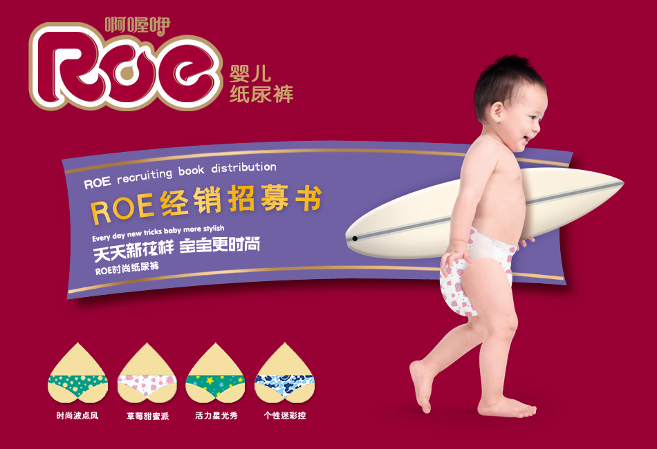 ROE系福建省漢和護(hù)理用品有限公司旗下紙尿褲品牌,供應(yīng)歐美和澳大利亞、新西蘭各大超市市場(chǎng)。以?xún)?yōu)異的性?xún)r(jià)比,在Pak‘nSave、Woolworths、New World、Coles、Kmarf等超市熱銷(xiāo),并在2011、2012年連續(xù)被Pak‘nSabe推薦為最高性?xún)r(jià)比紙尿褲品牌、生產(chǎn)企業(yè)。