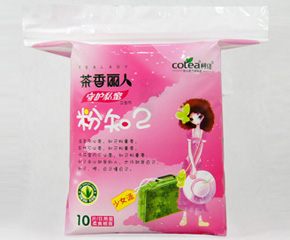 廈門柯佳衛(wèi)生用品有限公司旗下的茶香麗人衛(wèi)生巾,柔軟舒適,是專門針對少女研發(fā)設(shè)計的。本品運用尖端科技導(dǎo)入茶工藝層,具有消炎、抗菌、抗氧化功能,還有消毒除臭、促進人體新陳代謝,提高人體免疫能力,增強人體肌能等理療功能,純天然呵護、更舒適。