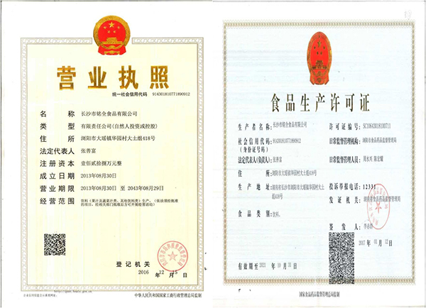 長沙市銘全食品有限公司,連續(xù)5年銷量居全省前列,2017、2018年連續(xù)被授予湖南省“ 守合同重信用單位”稱號。嚴控品質(zhì)同時,精心研發(fā),不斷創(chuàng)新,兩年來申請外觀專利和實用型專利5項。