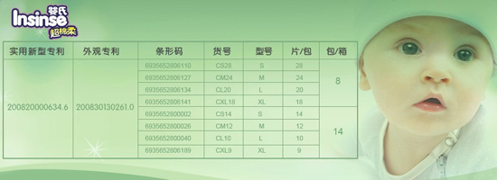 嬰氏紙尿褲,專為寶寶貼心設計,有360度防尿的功效,并且有三種不同的系列適合不同需求的寶寶,超棉柔系列、魔術扣系列、紙尿片系列。有超強的吸收能力,能吸收寶寶整晚尿濕,保持寶寶屁屁的干爽。