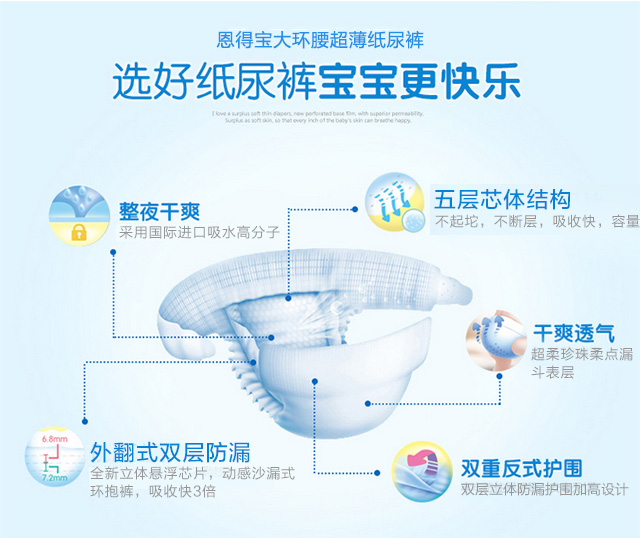 寶寶的小屁股,需要媽媽們更好的關(guān)愛,你需要給寶寶選擇一款超薄、透氣、干爽、安全、健康的紙尿褲,恩得寶嬰兒紙尿褲符合這些特點,是寶媽們的佳選擇,給寶寶高品質(zhì)呵護(hù)。