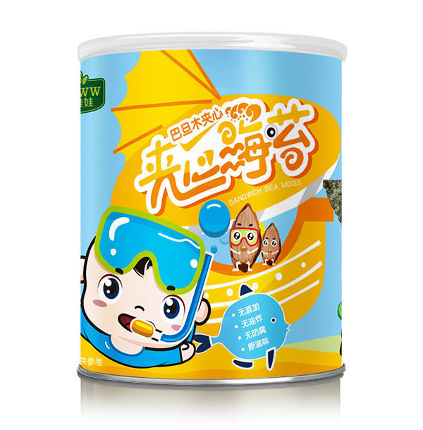 好娃娃夾心海苔系列有桶裝、袋裝兩個(gè)包裝,采用的是進(jìn)口無(wú)污染,自然生成且生長(zhǎng)周期合適的條斑紫菜
