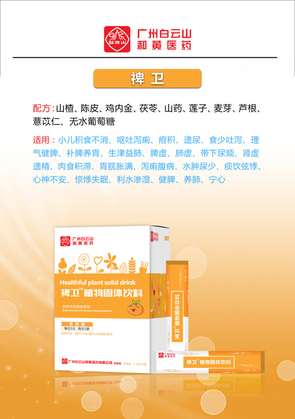 配方:山楂、陳皮、雞內(nèi)金、茯苓、山藥、蓮子、麥芽、蘆根、薏苡仁、無水葡萄糖