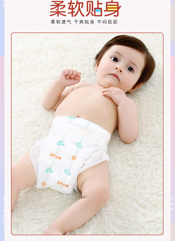 宜片無憂童趣紙尿褲采用熱風(fēng)材質(zhì),親膚柔軟,選用柔軟熱風(fēng)凸點無紡布作為面料,具有蓬松度高,彈性好,手感柔軟,透氣性好等特點,寶寶穿著舒適,玩的開心,睡得安心。