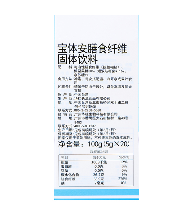 寶體安膳食纖維,選用日本林原株式會社公司專利水溶性膳食纖維Fibryxa,由淀粉酶作用產(chǎn)生的可溶性膳食纖維,是一款高度可溶解膳食纖維;同時添加水溶性膳食纖維、益生元,水蘇糖和低聚果糖,配比科學,營養(yǎng)均衡,且已獲得美國FDA、GRAS認證,至臻品質(zhì),值得信賴,且具有易消化好吸收的優(yōu)勢特點,守護人體健康更給力!