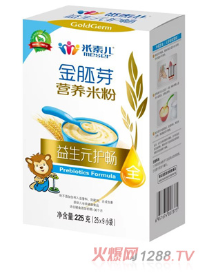 米素兒金胚芽營(yíng)養(yǎng)米粉以金胚芽大米作為原料,采用獨(dú)有的CHE淀粉酶解工藝,更好消化吸收,特別添加益生元組合、瑞士進(jìn)口DHA,含有低聚果糖,有利于寶寶腸道健康,有效抑制腸道有害菌,保護(hù)寶寶消化道,促進(jìn)營(yíng)養(yǎng)吸收,提高寶寶;