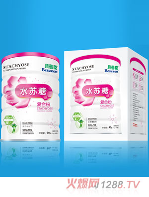 水蘇糖:水蘇糖是天然存在的一種四糖,是一種可以顯著促進(jìn)雙歧桿菌等有益菌增殖的功能性低聚糖。純品為白色粉末,味稍甜,甜度為蔗糖的22%,味道純正,無任何不良口感或異味。其分子結(jié)構(gòu):“半乳糖-半乳糖-葡萄糖-果糖”。水蘇糖對人體胃腸道內(nèi)的雙歧桿菌、乳酸桿菌等有益菌群有著極明顯的增殖作用,能迅速改善人體消化道內(nèi)環(huán)境,調(diào)節(jié)微生態(tài)菌群平衡。它能促進(jìn)形成有益菌在消化道內(nèi)的優(yōu)勢菌地位,抑制產(chǎn)氣產(chǎn)酸梭狀芽孢桿菌等腐敗菌的生產(chǎn),另外產(chǎn)生大量生理活性物質(zhì),調(diào)節(jié)腸道pH值、滅殺致病菌,阻遏腐敗產(chǎn)物生成,抑制內(nèi)源致癌物的產(chǎn)生和吸收,并且分解衍生出多重免疫功能因子。