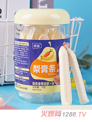 暖馨梨膏條,嚴(yán)選食材,精湛制作,有酸奶味、火龍果味、菠菜味、香蕉胡蘿卜味,共四種口味,特加入梨膏,甜蜜滋潤,好吃不膩。條狀設(shè)計(jì),大小適合。