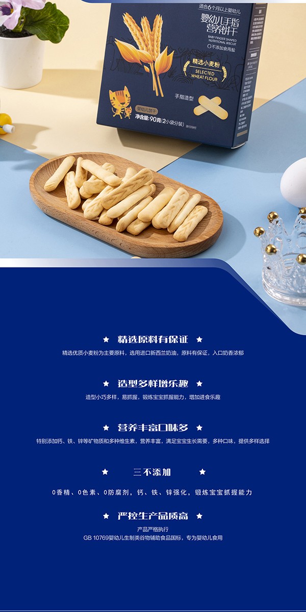 嬰標(biāo)GB-10769,不添加香精、色素、防腐劑;0添加白砂糖;0添加食鹽;鈣鐵鋅強化;進口新西蘭奶油,安全健康,美味營養(yǎng),好吃又好玩,相伴童年美妙時光!