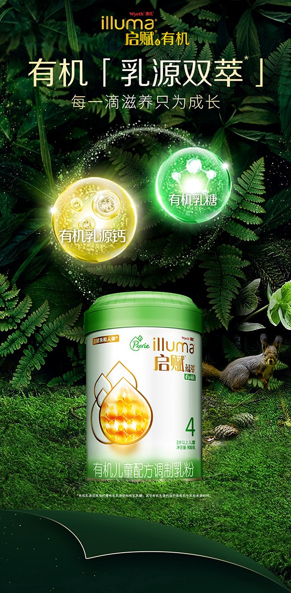 Wyeth惠氏啟賦有機4段兒童奶粉屬于愛爾蘭進口產(chǎn)品,適用于3歲以上兒童,以乳粉入料,添加了DHA、維生素A、維生素D、鈣等成分,DHA含量為39.7mg/100g,鈣含量為542mg/100g。