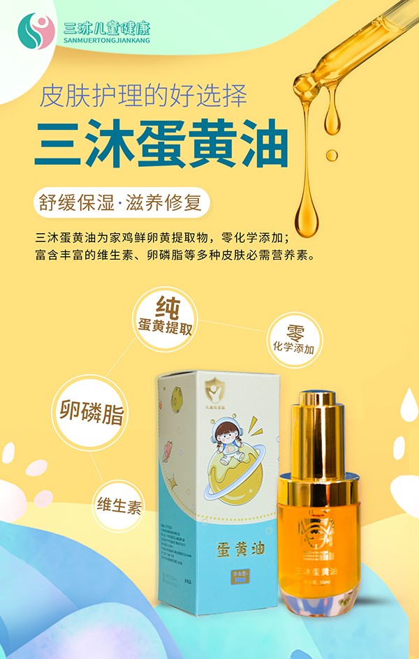 三沐瑤浴蛋黃油為家雞鮮卵黃提取物,零化學(xué)添加,富含豐富的維生素、卵磷脂等多種皮膚必需營(yíng)養(yǎng)素。舒緩保濕,滋養(yǎng)修護(hù),適用于多種肌膚問(wèn)題,如寶寶頭垢/紅屁屁、皮膚褶皺處淹紅、干燥起皮/皴裂/干疹、預(yù)防妊娠紋/乳頭皸裂、燙傷破皮等,家中常備皮膚護(hù)理的好選擇。