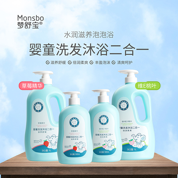 夢(mèng)舒寶嬰童洗沐二合一,有草莓精華、維E桃葉兩款,滋養(yǎng)舒緩,倍潤柔爽,豐盈泡沫,清爽呵護(hù),讓寶寶愛上洗澡。