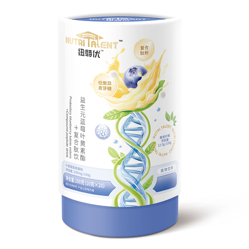 紐特優(yōu)益生元藍莓葉黃素酯+復合肽飲,膳食纖維添加量12g/100g,葉黃素酯微囊粉添加量100mg/100g,搭配復合肽粉、低聚異麥芽糖、山楂/枸杞等藥食同源成分,多重護眼營養(yǎng),守護視力健康。獨立小包裝,液態(tài)好吸收,即補即營養(yǎng),安全又美味!