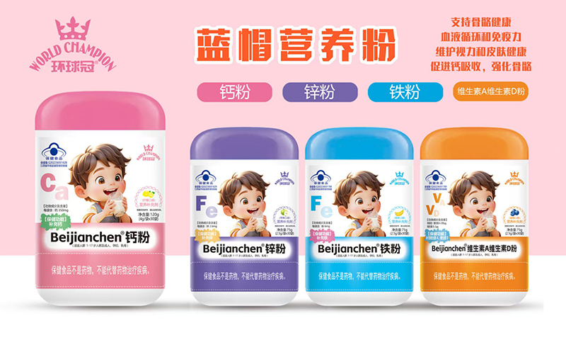 環(huán)球冠藍帽營養(yǎng)粉,有鈣粉、鐵粉、鋅粉、維生素A維生素D粉,共四款,優(yōu)選原料,科學配比,營養(yǎng)均衡,具有藍帽認證的保健功能。全力支持骨骼健康、血液循環(huán)和免疫力,維護視力和皮膚健康,助力鈣吸收,強化骨骼。