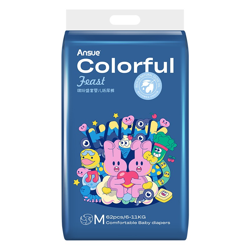 繽紛盛宴嬰兒紙尿褲/拉拉褲,云般柔軟,專為嬰兒肌,多彩設(shè)計(jì)+6代芯體,守護(hù)寶寶每一步。1片瞬吸,8次尿量。瞬吸高分子,一夜一片睡香香;3D表層+智選優(yōu)材,筑牢“屁屁防護(hù)盾”;3D雙層柔點(diǎn)觸感,拒絕潮濕,時(shí)刻干爽親膚;多重品質(zhì)檢驗(yàn),嚴(yán)選優(yōu)材,安全體驗(yàn)有保障;3段式高彈腰圍,柔軟全包裹,隨動(dòng)作變換自由拉伸,貼身防護(hù)不側(cè)漏,給寶寶可感知的舒適;萃取橄欖油精華,呵護(hù)嬌嫩肌,有效防紅臀。搭配科學(xué)護(hù)理提示,換褲清潔、過(guò)敏應(yīng)對(duì)全涵蓋。選安秀兒,給寶寶“臀”級(jí)寵愛(ài)~