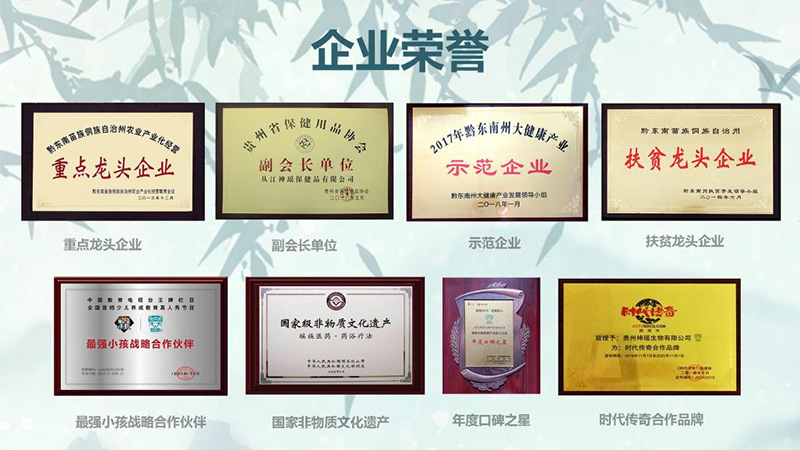 貴州神瑤生物科技有限公司自成立以來,長期專注于國家非物質(zhì)文化遺產(chǎn)瑤族藥浴產(chǎn)品的研發(fā)生產(chǎn)和銷售,生產(chǎn)基地位于瑤浴文化之鄉(xiāng)------貴州省從江縣。公司自成立起先后獲得了黔東南州農(nóng)業(yè)產(chǎn)業(yè)化重點龍頭企業(yè)、貴州省守合同重信用單位,央視網(wǎng)商城優(yōu)選品牌,2019年中國母嬰產(chǎn)業(yè)“口碑之星”,中國教育電視臺《最強小孩》欄目戰(zhàn)略合作伙伴等榮譽。同時,公司擁有商標(biāo),版權(quán),專利等知識產(chǎn)權(quán)保護共計三十余項。