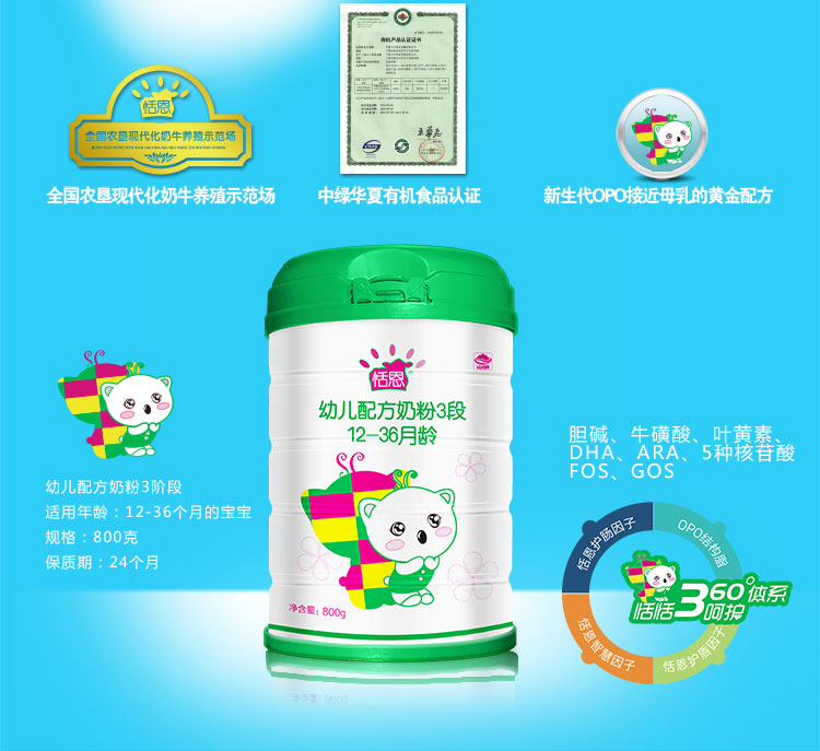 品牌名稱:恬恩 主營產(chǎn)品:恬恩嬰幼兒奶粉招商 品牌特色:有機奶源 全新OPO配方