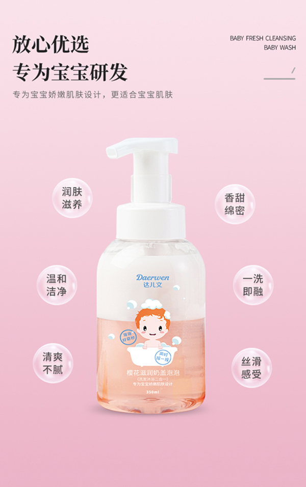 武漢達(dá)兒文生物科技有限公司是一家專門致力于孕嬰童產(chǎn)品的公司,旗下的達(dá)兒文來源正規(guī),沒有中間層層剝利環(huán)節(jié),絕對(duì)的降價(jià)不降質(zhì),是廣大代理商朋友的理想選擇。尤其是這款達(dá)兒文櫻花滋潤(rùn)奶蓋泡泡,更是值得青睞!