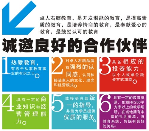 品牌名稱:卓人 主營產(chǎn)品:卓人教育誠邀加盟 品牌特色:專業(yè) 科學(xué)
