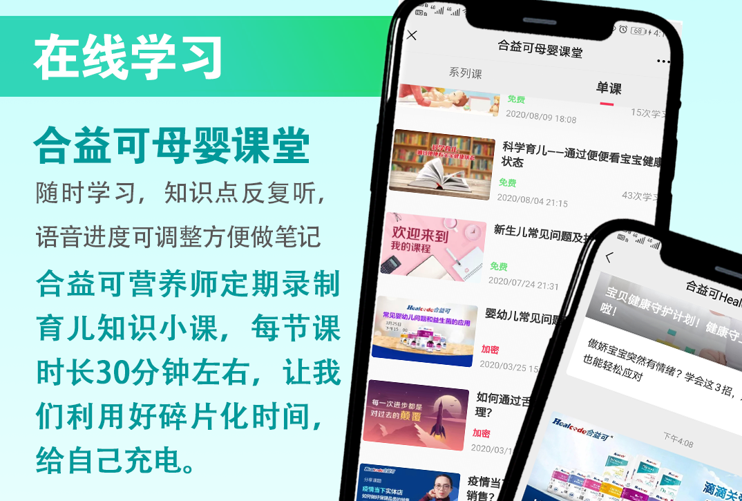 除了線上線下統(tǒng)一培訓(xùn),我們還為合作門店學(xué)員提供了母嬰營(yíng)養(yǎng)知識(shí)學(xué)習(xí)課堂,課程聚焦寶寶常見喂養(yǎng)問題、過(guò)敏、腸道菌群、鈣鐵鋅元素缺乏等育兒知識(shí),商學(xué)院老師將定期錄制育兒知識(shí)小課,每節(jié)課時(shí)長(zhǎng)在30分鐘,方便學(xué)員利用碎片化時(shí)間去學(xué)習(xí)更多的知識(shí),公眾號(hào)的母嬰課堂還有一個(gè)特點(diǎn)就是能隨時(shí)聽、反復(fù)聽、語(yǔ)音進(jìn)度可調(diào)整。