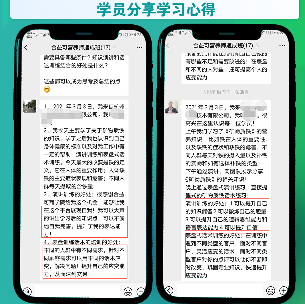 合益可商學(xué)院致力于幫助打造門店?duì)I養(yǎng)師,區(qū)域內(nèi)開設(shè)營(yíng)養(yǎng)師培訓(xùn)班,分別根據(jù)經(jīng)銷商和終端門店的業(yè)務(wù)人員和營(yíng)養(yǎng)師做對(duì)應(yīng)的專業(yè)培訓(xùn),幫助代理商打造專業(yè)的業(yè)務(wù)人員和營(yíng)養(yǎng)師,更好的服務(wù)終端門店;幫助門店打造專業(yè)的店員或店長(zhǎng),更好的服務(wù)消費(fèi)者。這類培訓(xùn)最大的特色就在于將學(xué)習(xí)的內(nèi)容與實(shí)戰(zhàn)結(jié)合,主張“多學(xué)不如多練”,通過(guò)將所學(xué)內(nèi)容演講訓(xùn)練和對(duì)講訓(xùn)練,真正做到學(xué)以致用,并且根據(jù)演練過(guò)程中多種角色演練,讓學(xué)員根據(jù)不同類型的客戶,靈活應(yīng)變?cè)捫g(shù),快速提升應(yīng)變能力。
