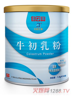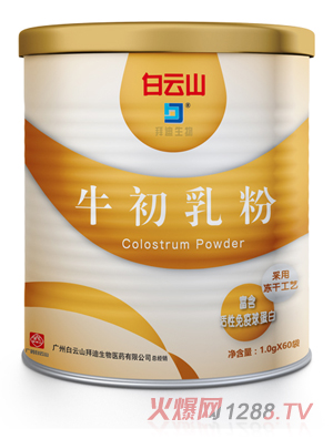白云山拜迪生物牛初乳嚴(yán)格精選乳牛分娩后前四次分泌的初乳;钚猿煞趾繕O高,其中IgG含量高達(dá)25%,在國內(nèi)及國際市場均處于水平。