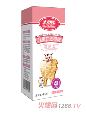 太極娃兒童口腔噴劑含茶葉提取物、啤酒花提取物、無色素、無防腐劑,含負(fù)離子抗菌配方,一直口腔內(nèi)細(xì)菌,添加高鈣護(hù)齒成分,強(qiáng)壯牙齒,更有效防齲齒。水果口味,孩子易接受,輕松一噴,口腔問題不再難!