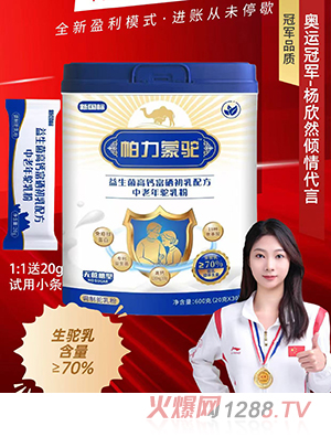 如今,這款兼具品質(zhì)與實(shí)力的帕力蒙駝益生菌高鈣富硒初乳配方中老年駝乳粉,不僅為中老年群體帶來(lái)了優(yōu)質(zhì)的營(yíng)養(yǎng)選擇,更開(kāi)啟了充滿潛力的母嬰招商篇章。代理招募正火熱進(jìn)行中,我們帶來(lái)全新盈利模式,為合作伙伴提供廣闊的發(fā)展空間與豐厚的盈利機(jī)會(huì)。更值得信賴的是,產(chǎn)品由奧運(yùn)冠軍傾情代言,憑借冠軍品質(zhì)背書,進(jìn)一步彰顯了產(chǎn)品的卓越實(shí)力與可靠品質(zhì),為品牌增添了強(qiáng)大的市場(chǎng)競(jìng)爭(zhēng)力,也讓合作伙伴在市場(chǎng)推廣中更具優(yōu)勢(shì)。