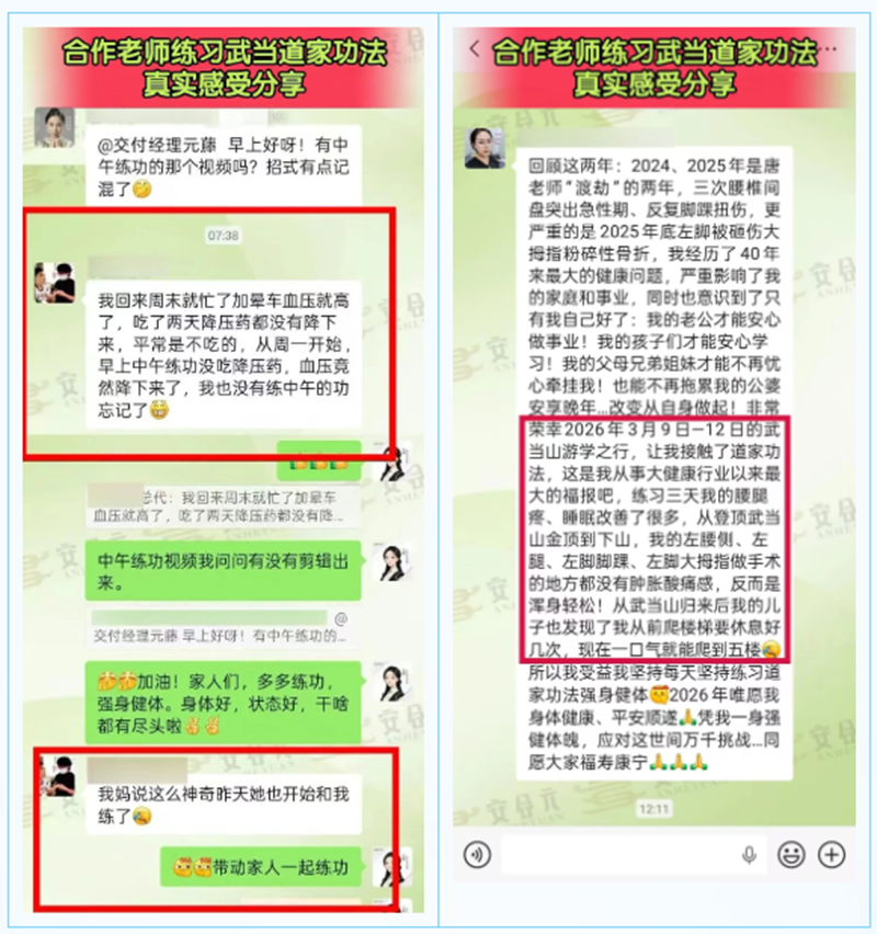 暫別忙碌的工作節(jié)奏,置身仙氣飄渺的武當(dāng)仙山,清晨,在武當(dāng)大師的帶領(lǐng)下修習(xí)道家正統(tǒng)養(yǎng)生功,于吐納間喚醒身體本源活力;夜晚,靜心聆聽道家文化講座,感悟天人合一的養(yǎng)生智慧。這種沉浸式的體驗(yàn),讓大家的心靈得到洗禮與沉淀,從而以更平和的心態(tài)、更飽滿的狀態(tài)迎接未來的事業(yè)與生活。