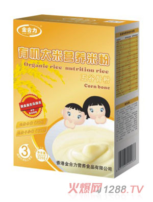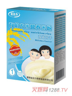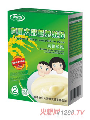 配料:有機大米、白砂糖、全脂奶粉、濃縮乳清蛋白、低聚果糖、胡蘿卜粉、賴氨酸、精氨酸、β-胡蘿卜素、復合營養(yǎng)素(超微碳酸鈣、磷酸氫鈣、葡萄糖酸亞鐵、葡萄糖酸鋅、碘酸鉀、亞硒酸鈉、維生素A、維生素D、維生素E、維生素B1、維生素B2、維生素B6、維生素B12、維生素C、煙酸、葉酸、泛酸鈣、生物素、牛磺酸、葉黃素)。