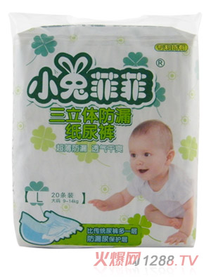 小兔菲菲紙尿片是廣州咕嚕咕嚕嬰幼兒用品有限公司強勢推出品牌,產品使用復合材料生產,用透氣膜,用絨面魔術腰貼,比較薄、吸水后不會起團,尿片平整,柔軟性好、芯體吸水不會斷裂,透氣性好是廣大媽媽的信賴之選,現(xiàn)面向全國空白市場區(qū)域誠招代理商加盟。