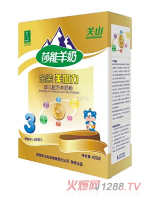 美加力配方羊奶粉(900g罐)以莎能奶羊新鮮乳汁為主要原料,根據(jù)6-12月齡生長(zhǎng)發(fā)育過(guò)程中營(yíng)養(yǎng)需求變化,除去羊奶中部分乳脂肪(飽和脂肪酸),選用不含反式脂肪酸的幾種中高檔健康植物油科學(xué)搭配,使亞油酸與a-亞麻酸的配比更加合理,符合國(guó)家配方食品安全標(biāo)準(zhǔn)和中國(guó)營(yíng)養(yǎng)學(xué)會(huì)推薦的食品營(yíng)養(yǎng)標(biāo)準(zhǔn),有利于孩子的健康成長(zhǎng)和智力發(fā)育。