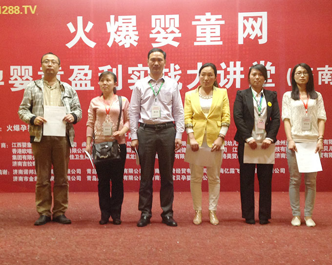 2014年4月24日-25日,火爆嬰童網(wǎng)盈利實(shí)戰(zhàn)大講堂濟(jì)南站成功召開(kāi)!育嬰世家、關(guān)山、卡其拉、雅泰、棒棒聰、寶寶糧倉(cāng)、拉貝奇、小貝丁、和天然、怡貝爾、宜貝康、貝美滋、愛(ài)媽寶貝、威海億露飛衛(wèi)生用品、香港翰鵬集團(tuán)、可愛(ài)多奶瓶16家知名品牌參展, 十余家嬰童商貿(mào)公司,29家參觀廠商,600位山東嬰童店經(jīng)銷代理商朋友參加!火爆商學(xué)院培訓(xùn)講師楊帆和丁建現(xiàn)場(chǎng)授課,受到廣大經(jīng)銷商朋友的認(rèn)可!