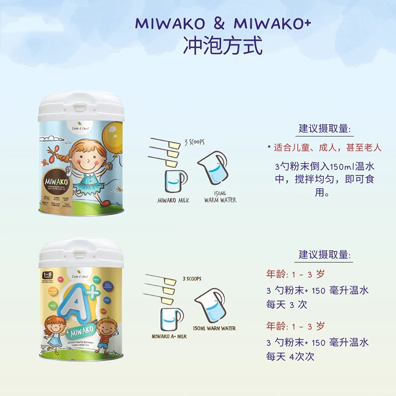 MIWAKO植物奶粉系列和MIWACARE兒童保健品系列,除了為寶寶提供全面的營養(yǎng),也滿足不同年齡段的需求。我們不僅僅是奶粉或功能性飲品,更是一種健康生活的象征。為家庭健康帶來益處的同時也為成長中的小寶貝們帶來全面的營養(yǎng)保障。