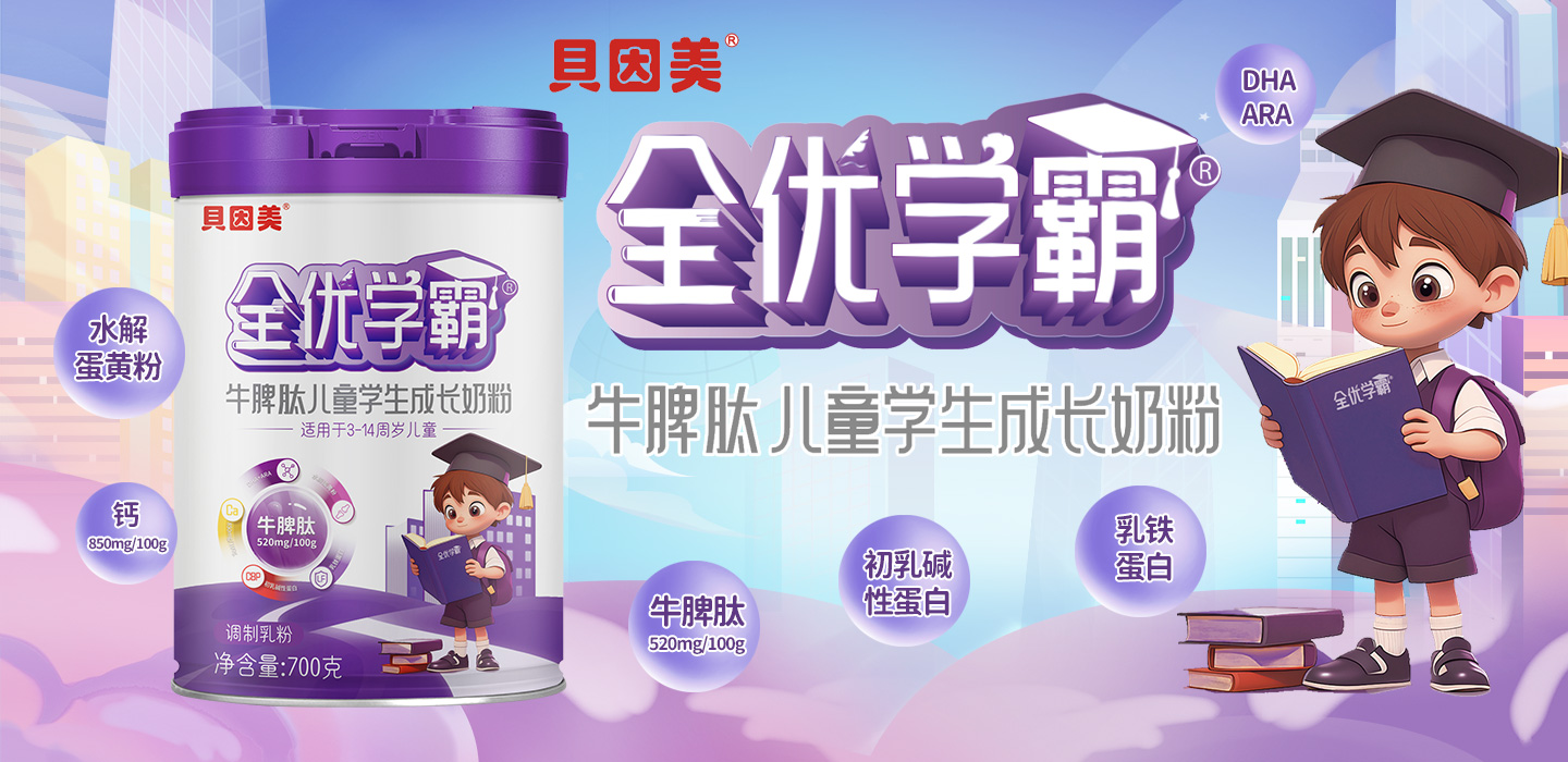 貝因美全優(yōu)學(xué)霸牛脾肽兒童學(xué)生成長(zhǎng)奶粉,一款針對(duì)中國(guó)兒童營(yíng)養(yǎng)需求和體質(zhì)特點(diǎn)研發(fā)的成長(zhǎng)奶粉,甄選優(yōu)質(zhì)奶源,源頭嚴(yán)格把控,確保產(chǎn)品品質(zhì),科學(xué)配比多種營(yíng)養(yǎng)成分,滿(mǎn)足生長(zhǎng)發(fā)育需求。