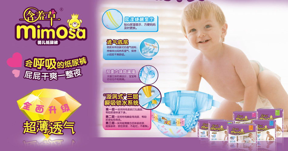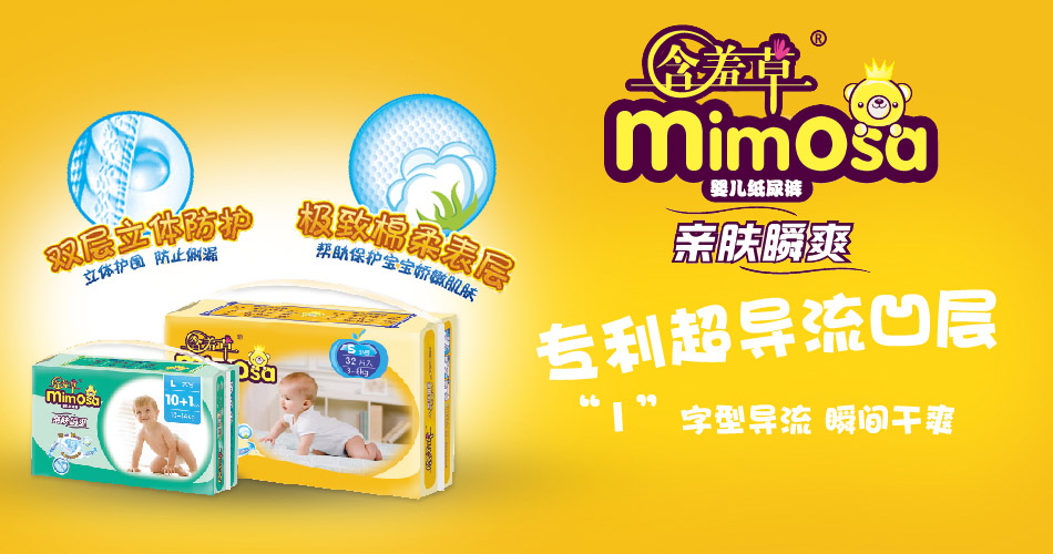 含羞草力求為您提供最優(yōu)質(zhì)的木棉,吸收性最好的SAP,安全放心的食品級膠貼,在源頭為您把好關,全心全意從細節(jié)呵護您。從嬰兒紙尿褲到女性衛(wèi)生用品,再到成人護理用品,生命綿延不息,含羞草呵護不止!