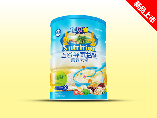 優(yōu)貝滋DHA益生元鈣+鋅鈣鐵鋅果蔬胡蘿卜番茄五谷鮮蔬營(yíng)養(yǎng)米粉產(chǎn)品展示