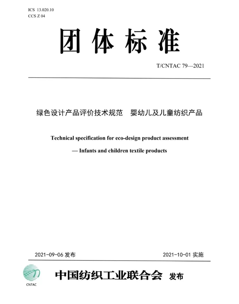 由中國紡織工業(yè)聯(lián)合會(huì)牽頭聯(lián)合多家嬰童服裝企業(yè)專家經(jīng)過3年多時(shí)間編制的“綠色設(shè)計(jì)產(chǎn)品評(píng)價(jià)技術(shù)規(guī)范—嬰幼兒及兒童紡織產(chǎn)品”團(tuán)體標(biāo)準(zhǔn)《T/CNTAC79-2021》已于2021年9月6日發(fā)布,并于2021年10月1日起實(shí)施,標(biāo)志著綠色童裝產(chǎn)品認(rèn)證啟動(dòng)!