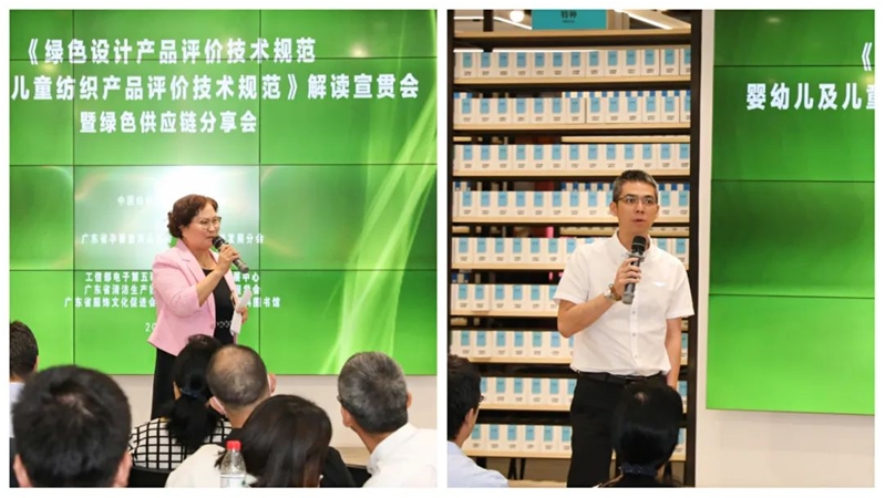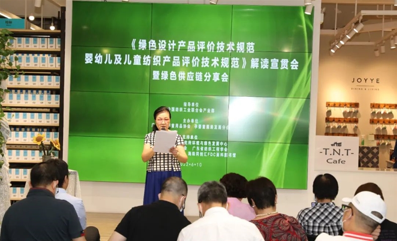 會(huì)上邀請(qǐng)了工業(yè)和信息化部電子第五研究所姜濤主任作了《綠色設(shè)計(jì)產(chǎn)品及其評(píng)價(jià)技術(shù)規(guī)范編制意義》主題發(fā)言,闡述了制定嬰幼兒童裝綠標(biāo)的背景、意義,綠色設(shè)計(jì)對(duì)產(chǎn)品全生命周期的影響,通過對(duì)產(chǎn)品標(biāo)準(zhǔn)評(píng)價(jià)可以將市場(chǎng)產(chǎn)品優(yōu)劣識(shí)別出來,企業(yè)通過評(píng)價(jià)發(fā)現(xiàn)不足改進(jìn)提高,接下來要開展綠色童裝產(chǎn)品評(píng)定認(rèn)證的工作。