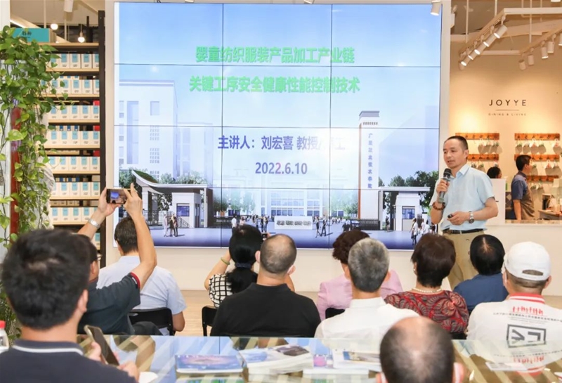 會(huì)議還邀請(qǐng)了廣東職業(yè)技術(shù)學(xué)院劉宏喜教授作了《嬰童紡織服裝產(chǎn)品加工產(chǎn)業(yè)鏈工序安全健康性能控制技術(shù)》主題演講,闡述了服裝生態(tài)紡織品概念、綠色原材料和綠色染整工藝,要加強(qiáng)原材料選購和檢測(cè),增強(qiáng)企業(yè)的自控能力,生產(chǎn)出綠色生態(tài)的生態(tài)紡織服裝產(chǎn)品。