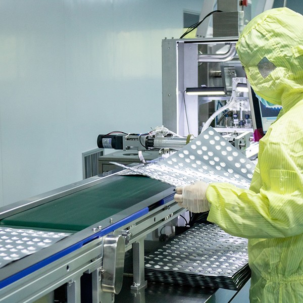 3、定量灌裝:利用高精度灌裝泵定量的罐裝到有鋁箔沖壓而成的泡罩中,保證了每片的重量和含量均勻度。