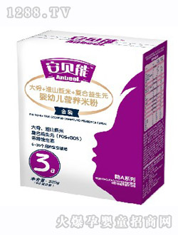 安貝能較大配方奶米粉新配方、新國際、新工藝,配方準(zhǔn)確,均衡營養(yǎng),好原料造好產(chǎn)品,充氮包裝,適合12-24個(gè)月的bao--bao,主要原料為大米蛋白、乳清白、乳清蛋白含量是乳基較大配方奶粉的80%,能量值相當(dāng)于乳基較大配方奶粉的80%。