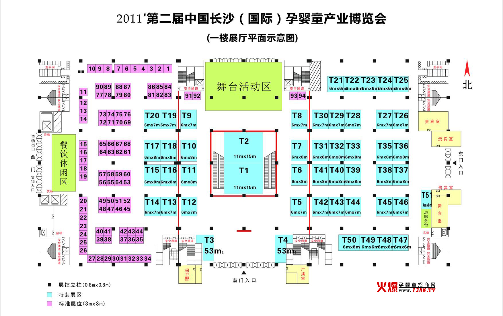 下面是2010中國國際長沙孕嬰童產(chǎn)業(yè)博覽會一樓展廳平面示意圖: